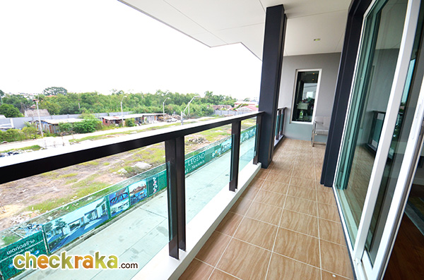 ระเบียงหน้าห้องนอนที่ 3 สามารถเดินทะลุไปมาตรงส่วนลานกว้างของระเบียงได้