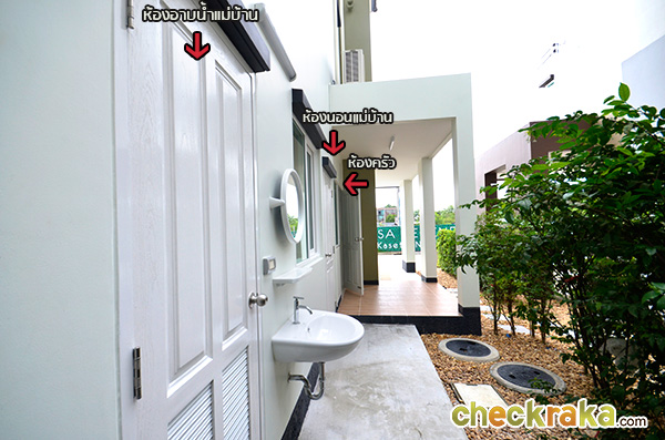เดินไปดูที่อีกฝั่งของตัวบ้านกันบ้างค่ะ ฟังก์ชั่นห้องต่างๆ ตามที่อธิบายในรูปเลยค่ะ