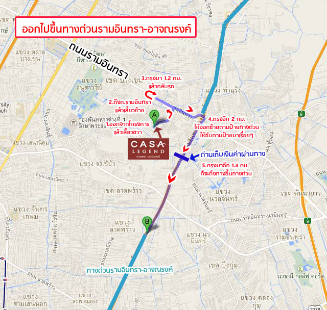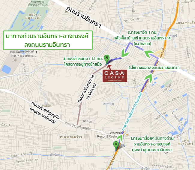 เส้นทางเข้าโครงการที่ 1 มาทางด่วนรามอินทรา-อาจณรงค์ ลงถนนรามอินทรา