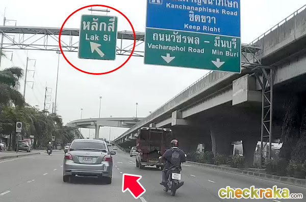 พอลงทางด่วนมาแล้วให้ชิดซ้ายยึดป้ายทางออกหลักสี่