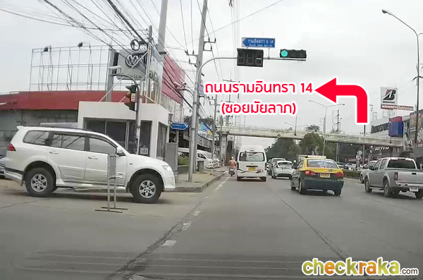 ถึงตรงแยกไฟแดงถนนรามอินทรา 14 (ซอยมัยลาภ) ก็เลี้ยวซ้ายเข้าไปได้เลยค่ะ