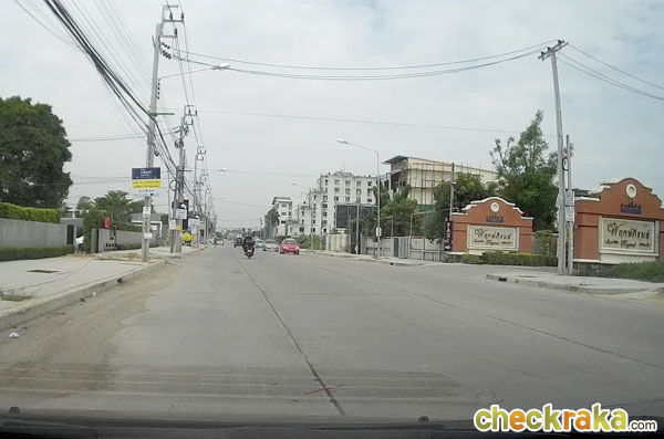 ตรงมาจนพ้นโค้งจะเข้าสู่บริเวณโซนบ้านพักอาศัย ซอยซ้ายมือเป็นแปลงที่ดินที่โครงการยังไม่สร้างบ้าน