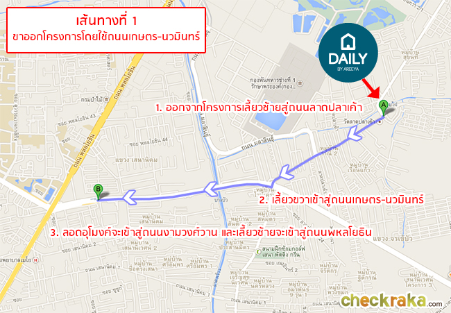 เส้นทางที่ 1 - ขาออกโครงการโดยใช้ถนนเกษตร-นวมินทร์