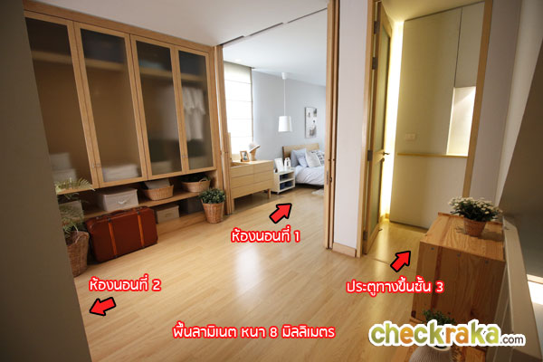 ขึ้นมาบนชั้น 2 จะเห็นความแตกต่างระหว่างบ้านเปล่ากับบ้านตัวอย่างที่ตกแต่งแล้ว