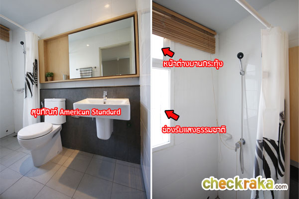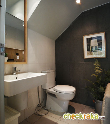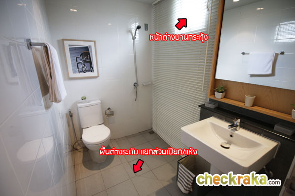 ห้องน้ำภายในห้องนี้จะมีขนาดใหญ่กว่าห้องที่แล้วเล็กน้อย สุขภัณฑ์เหมือนกัน แต่มีจุดเด่นตรงช่องรับแสง