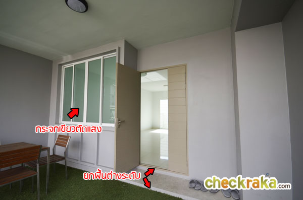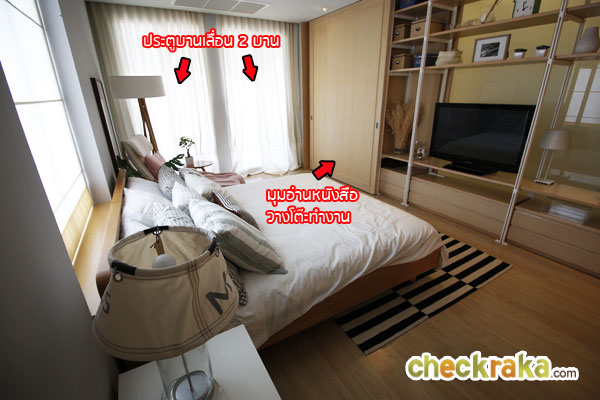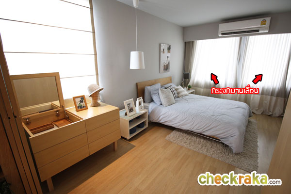 มองตรงไปจะมีประตูบานเลื่อนเปิดออกไปที่ระเบียงได้ทั้ง 2 บาน
