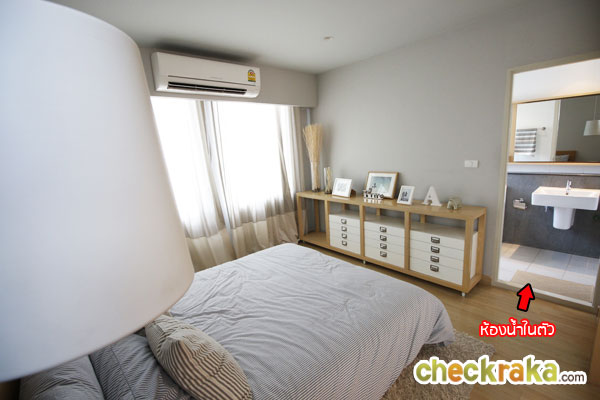 ส่วนห้องนอนขนาดกลาง(ห้องนอนที่ 1) มีหน้าต่างบานเลื่อน 2 บาน พร้อมห้องน้ำในตัวเช่นกันค่ะ