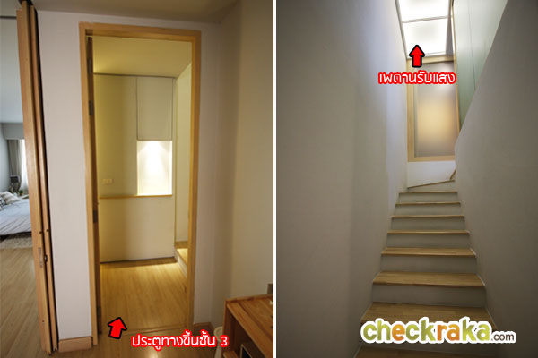 จากรูปซ้ายประตูทางขึ้นชั้น 3 จะอยู่ตรงทางเดินชั้น 2 ค่ะ ส่วนรูปขวาบันไดทางขึ้นชั้น 3