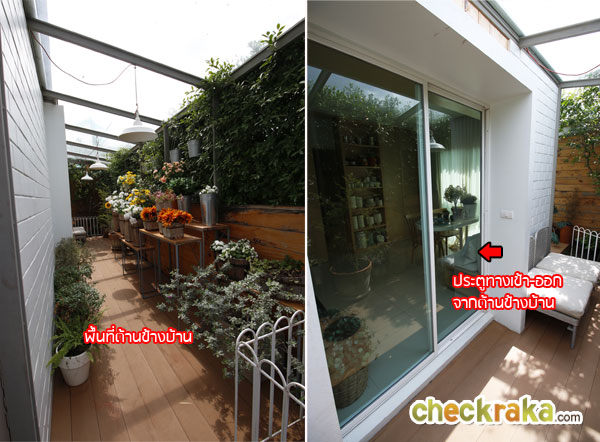 บ้านแปลงมุมนี้พื้นที่ข้างบ้านสามารถเดินทะลุไปที่หลังบ้านได้เลยนะค่ะ ส่วนรูปขวามือมีประตูทางเข้าบ้านจากส่วนนี้ได้เลย