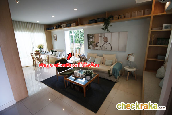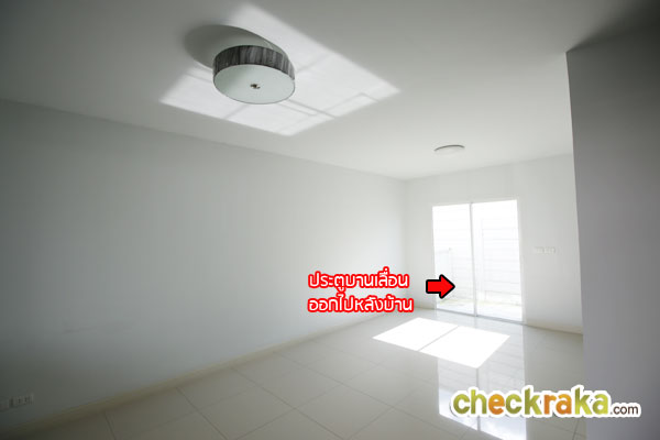 แต่มีประตูเปิดออกไปด้านหลังบ้านมาให้ค่ะ ส่วนประตูที่เห็นเป็นกระจกนี้ทางโครงการตกแต่งเพิ่มเติม