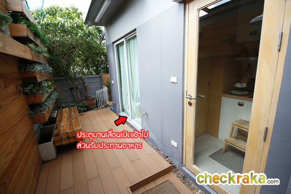 ถัดไปจะเห็นหน้าต่างบานเลื่อนทั้ง 2 บาน เปิดออกไปชมวิวได้
