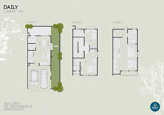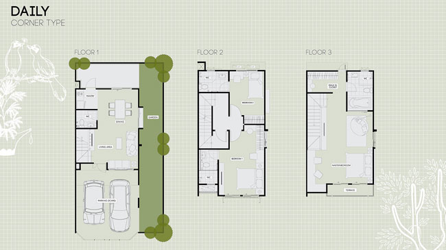ทาวน์โฮม CORNER TYPE กับฟังก์ชัน 3 ห้องนอน 4 ห้องน้ำ 2 ที่จอดรถ (พร้อมพื้นที่ด้านข้างบ้าน) จะเห็นว่า