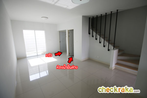 ห้องครัวจะอยู่ด้านหลังสุดถัดจากห้องน้ำ บ้านที่ส่งมอบจริงจะเป็นห้องเปล่าๆ ไม่มีประตูกั้นมาให้