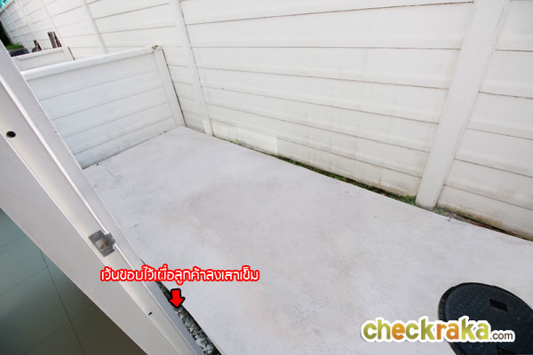 เห็นช่องทางระบายน้ำของที่นี่เว้นช่องไว้ดูสะดวกดีค่ะ ไม่ต้องต่อท่อระบาย ไม่ต้องห่วงเรื่องการอุดตันของท่อ