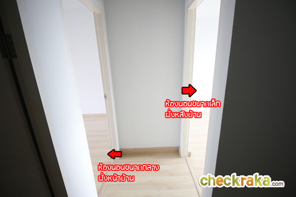 ห้องนอนขนาดเล็กอยู่ฝั่งหลังบ้าน ส่วนห้องนอนขนาดกลางจะอยู่ฝั่งหน้าบ้านค่ะ