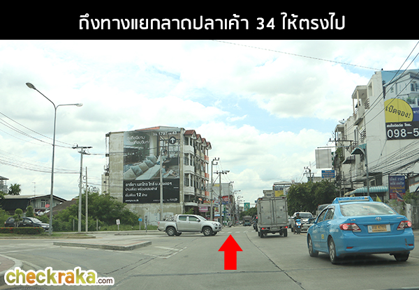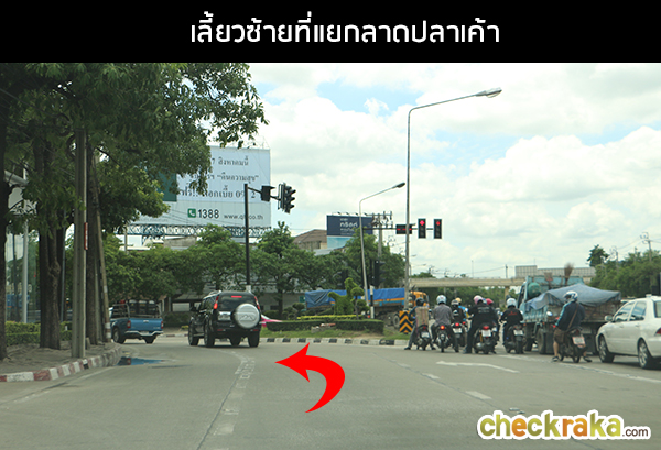 เมื่อออกมาด้านหน้า มองตรงไปก็จะเป็นทางโค้งของถนนลาดปลาเค้าพอดีค่ะ