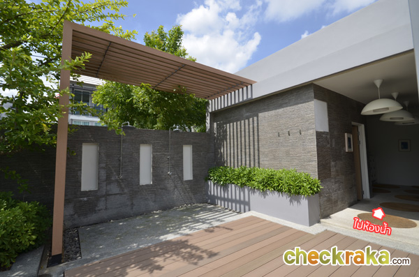 ระเบียงชมวิว ฝ้าด้านบนเป็นไม้เพื่อความสวยงาม พร้อมไฟดาวน์ไลท์