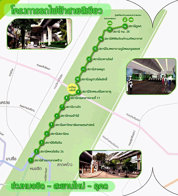 แผนที่โครงการรถไฟฟ้าสายสีเขียว สถานีที่ใกล้โครงการที่สุดคือสถานีมหาวิทยาลัยเกษตรศาสตร์