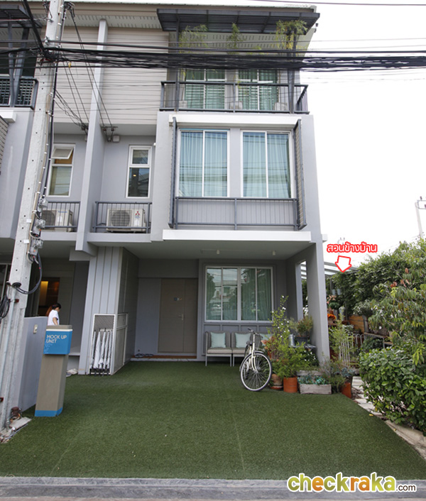 - แบบบ้านและวัสดุ - ในส่วนของแบบบ้านมีแค่แบบเดียว ดีไซน์บ้านค่อนข้างดูดีในสไตล์ Modern และใช้สีทาภายนอกเป็นสีสะท้อน UV รั้วระหว่างบ้านค่อนข้างเตี้ย (ซึ่งก็เป็นปกติของทาวน์โฮม) แต่จุดเด่นคือมีห้องนอนถึง 3 ห้อง และมีห้องน้ำในตัวครบทุกห้อง ซึ่งตอบโจทย์คนที่มีครอบครัวหลายคนได้เป็นอย่างดี วัสดุภายในบ้านโดยส่วนใหญ่ใช้วัสดุในเกรดระดับปานกลาง เช่น กรอบประตูอลูมิเนียมอบ กระจกประตูและหน้าต่างเป็นกระจกเขียวตัดแสงไม่ Temper พื้นกระเบื้องแกรนิตโต้ พื้นบันไดเป็นลามิเนต พื้นด้านบนเป็นลามิเนต ใช้อุปกรณ์ห้องน้ำ และสุขภัณฑ์ของ American Standard เป็นต้น