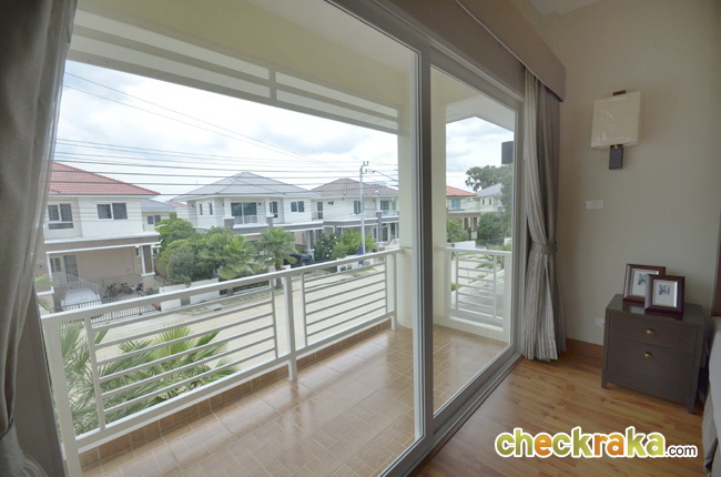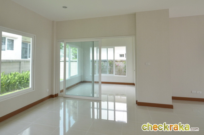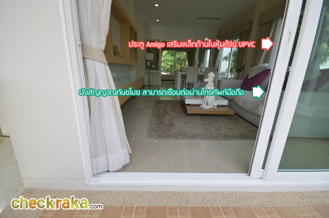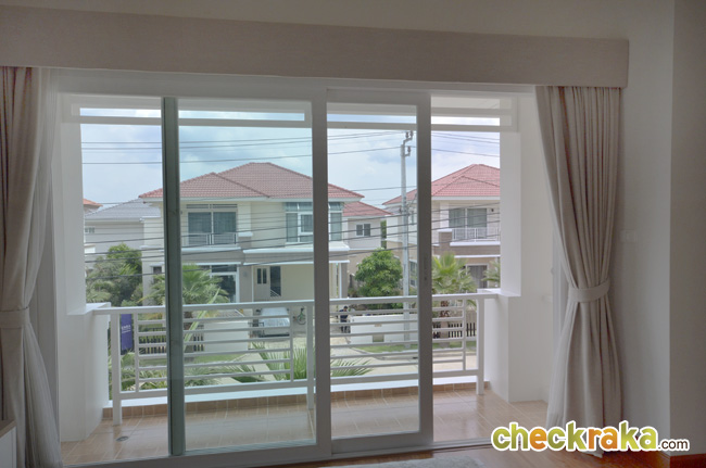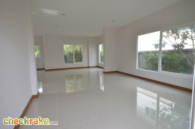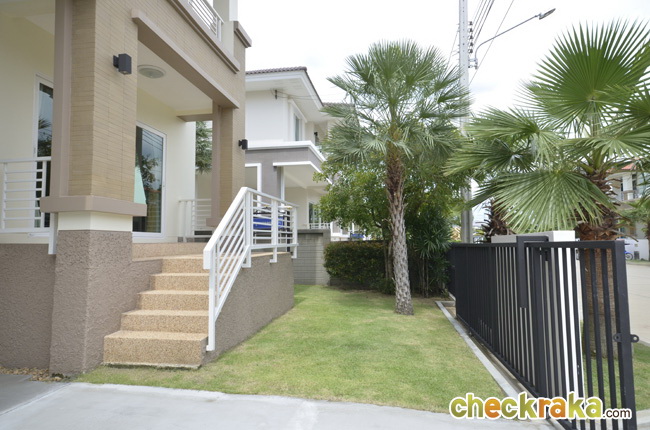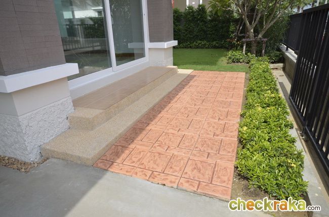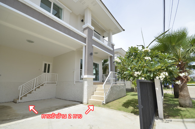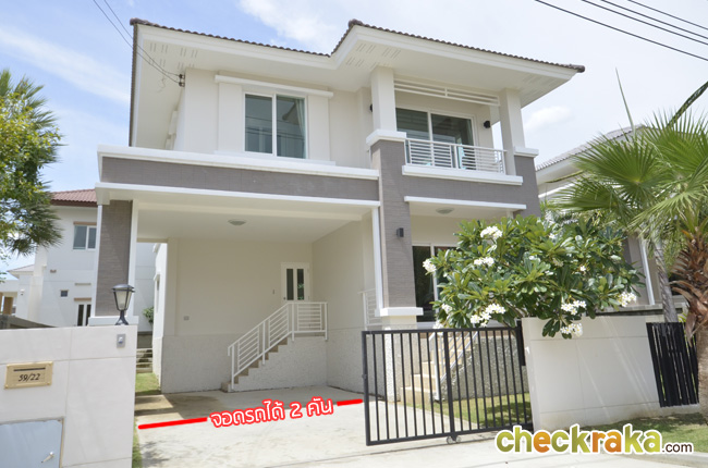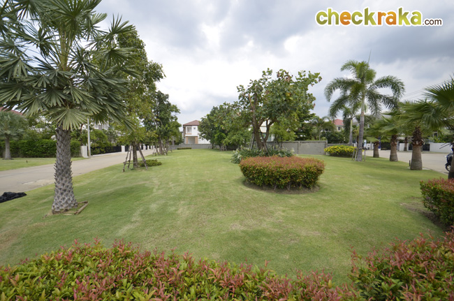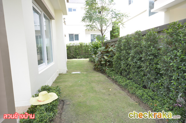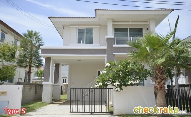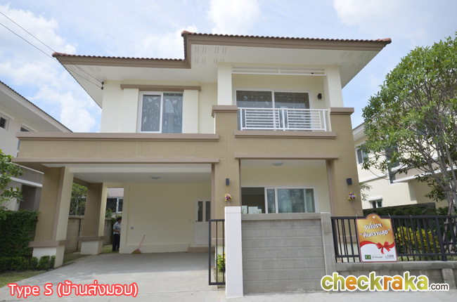- แบบบ้านและวัสดุโดยรวม สำหรับแบบบ้านของโครงการ ณ ปัจจุบันนี้มีอยู่ 3 แบบที่เปิดขาย โดยรวมดีไซน์ของบ้านจะเป็นแบบเรียบๆ ดูไม่หวือหวานัก และออกแบบมาคล้ายคลึงกันหมดทั้ง 3 แบบ แตกต่างที่ขนาดตัวบ้าน แต่ถึงแม้ว่าขนาดเล็กที่สุดจะเป็น Size S แต่เนื้อที่บ้านและพื้นที่บ้านก็ถือว่ากว้างขวางพอใช้ได้ทีเดียว ซึ่งถือว่าเป็นจุดเด่นของโครงการที่ต้องการนำเสนอบ้านที่เน้นไปที่ความสะดวกสบายในการใช้สอยพื้นที่บ้านมีถึง 3 ห้องนอน 3 ห้องน้ำ และยังมีห้องอเนกประสงค์ โดยเน้นให้ห้องแต่ละห้องกว้างขวาง ทั้งห้องนอน ห้องน้ำ รวมไปถึงสวนรอบๆ บ้าน สามารถรองรับครอบครัวขนาดใหญ่ที่มีสมาชิกหลายคนได้เป็นอย่างดี วัสดุที่ใช้ในส่วนประตูทางเข้าบ้านก็เน้นไปที่ความปลอดภัย มีทั้งฝังระบบป้องกันขโมย วงกบประตูใช้ของ Amigo ที่ทำจากเหล็กเคลือบ UPVC พื้นบ้านเป็นแกรนิตโต้ 60x60 ซม. ส่วนเครื่องสุขภัณฑ์ใช้ของ American Standard นอกจากนี้ยังมีเครื่องใช้ไฟฟ้าอย่าง โคมไฟ Downlight ติดตั้งให้ และแถมแอร์ของ Mitsubishi และมีติดตั้งระบบไฟฟ้ากับเครื่องปั๊มน้ำให้อีกด้วย โดยรวมแล้ว แบบบ้านและดีไซน์ไม่ได้มีอะไรโดดเด่น แต่ก็เหมาะสำหรับคนที่ชอบความเรียบง่ายที่ดูค่อนข้างจะ Homey และอบอุ่น