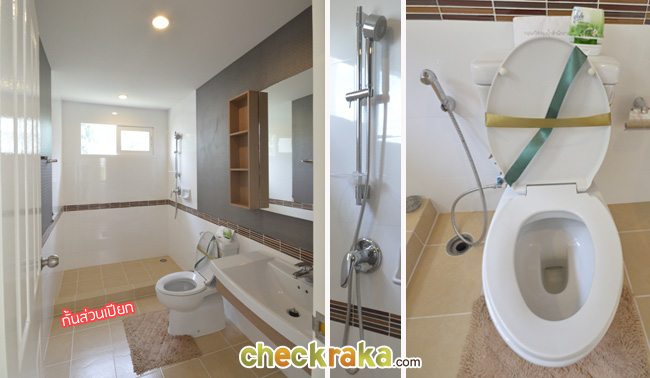 สุดท้ายเป็นห้องน้ำ เหมือนเดิมค่ะ กั้นส่วนเปียกด้วยธรณียกสูง