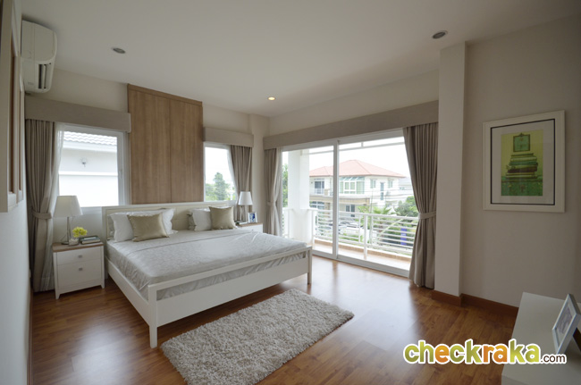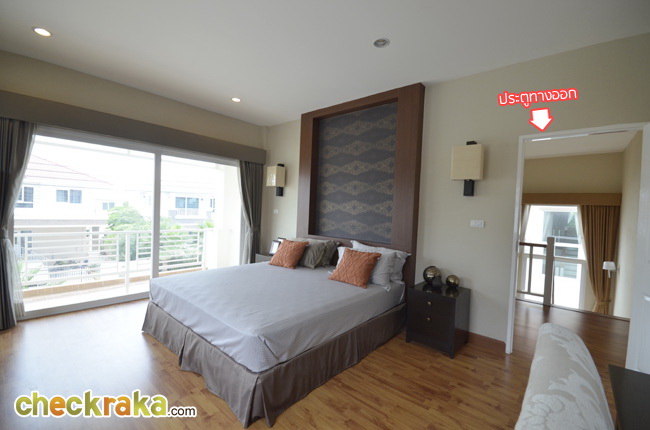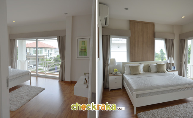 ขึ้นมาดู Master Bedroom กันเลยค่ะ ถ้ามองจากทางเข้าจะเห็นเตียง King Size อยู่ฝั่งซ้ายติดระเบียง
