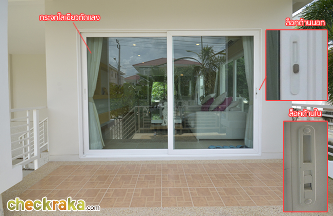 ประตูบานเลื่อนกระจกใสเขียวตัดแสงเหมือนกับของหน้าบ้านค่ะ