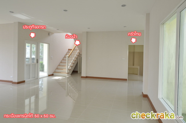 ส่วนบ้านส่งมอบที่ไม่ได้ยกสูงทำบันได ก็ปูกระเบื้องสวยๆให้ค่ะ