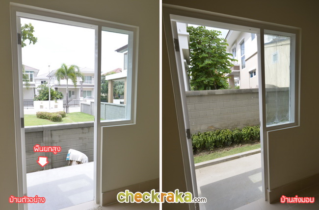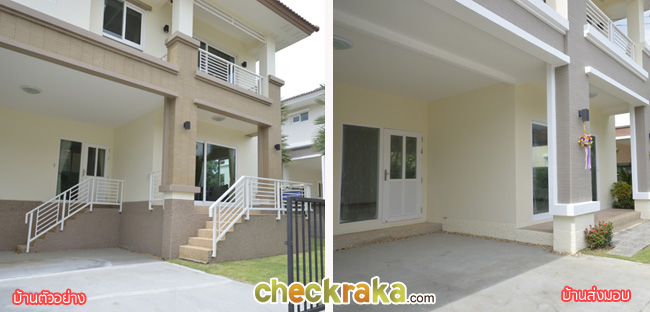 เปรียบเทียบกับบ้านส่งมอบ เห็นระเบียงใหญ่ชัดเจน