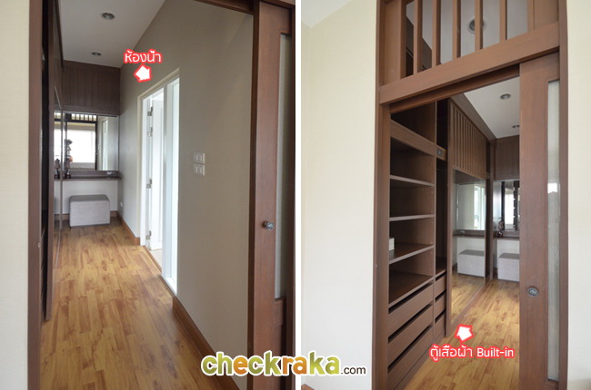 ดูจากบ้านส่งมอบจะเห็นเป็นครึ่งหนึ่งทำเป็น Walk in Closet อีกครึ่งเป็นห้องน้ำ