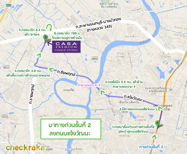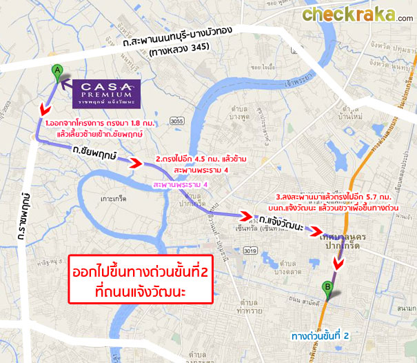 เส้นทางเข้าโครงการที่ 1 มาทางด่วนขั้นที่2 ลงถนนแจ้งวัฒนะ