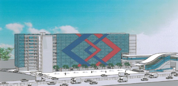 ภาพจำลองอาคารจอดรถ (Park and Ride) รถไฟฟ้าสายสีม่วงสถานีท่าอิฐ สามารถจอดรถได้ประมาณ 1,244 คัน