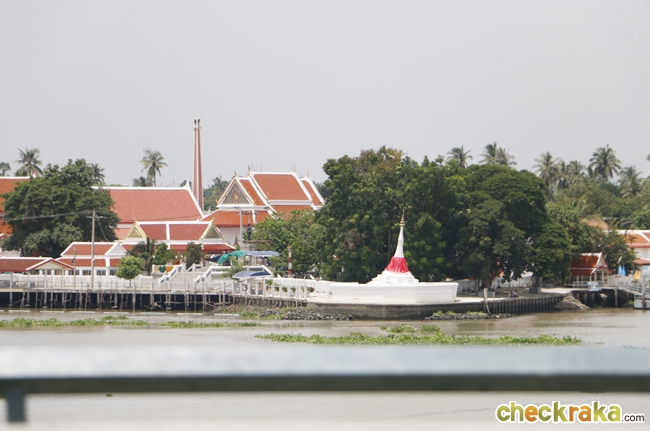 ระหว่างวิ่งอยู่บนสะพานหากมองมาทางซ้ายมือก็เห็นจะเห็นเกาะเกร็ด และวัดปรมัยยิกาวาส