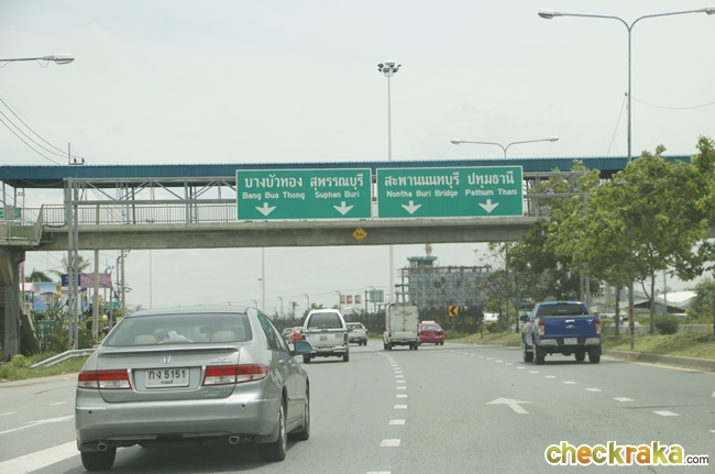 พอลงมาแล้วให้ตรงไปเรื่อยๆ บนถนนแจ้งวัฒนะอีกประมาณ 5.5 กม.