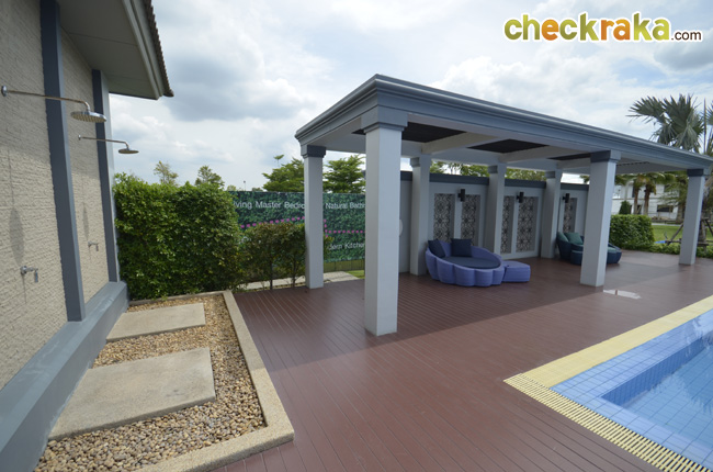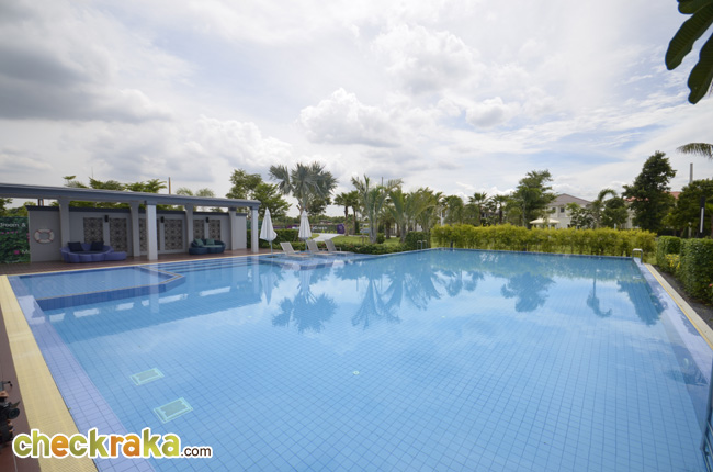 - ตัวโครงการโดยรวมและส่วนกลาง สภาพแวดล้อมภายในโครงการโดยรวมมีพื้นที่สีเขียวค่อนข้างเยอะ และในส่วนของสวนส่วนกลางที่สร้างเสร็จ ณ ตอนนี้มีขนาดที่ใหญ่ไม่น้อยประมาณ 5 ไร่ เป็นสวนสนามหญ้ากว้างขวาง พร้อม Club House ที่รวมฟิตเนส และสระว่ายน้ำขนาด 12 x 25 ตร.ม. อยู่ด้วย ซึ่งในขณะนี้ทางโครงการยังไม่มีการเก็บค่าใช้จ่ายในการใช้ฟิตเนส หรือสระว่ายน้ำ แต่ในอนาคตอาจจะมีการเรียกเก็บในแต่ละครั้ง แยกส่วนจากการเก็บค่าส่วนกลางรายปี ซึ่งยังไม่ได้กำหนดวันที่แน่นอน นอกจากนี้ โครงการมีแผนที่จะสร้างสวนสนามหญ้าสีเขียวยาวไปจนถึงด้านหลัง เพื่อเพิ่มความร่มรื่นและความเป็นธรรมชาติให้กับโครงการอีกด้วย โดยรวมแล้วโครงการนี้ร่มรื่น และโปร่งโล่งทีเดียว ดูไม่แน่น หรืออึดอัดเลย