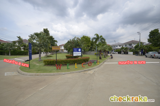 - ทำเลที่ตั้ง เนื่องจากโครงการตั้งอยู่ในช่วงด้านบนตอนปลายๆ ของถนนราชพฤกษ์ทำให้บรรยากาศโดยรวมของโครงการนั้นค่อนข้างสงบ ยังมีพื้นที่โล่งๆค่อนข้างเยอะ และดังนั้นจึงยังไม่ค่อยอุดมสมบูรณ์มากนักในแง่ของการจับจ่ายใช้สอย หากจะจับจ่ายซื้อของในชีวิตประจำวันก็ต้องขับรถไป Community Mall เช่น Pure Place, The Crystal PTT รวมถึงศูนย์บริการน้ำมันใหญ่ๆ หลายแห่งที่รวมเอาร้านสะดวกซื้อ และร้านอาหารต่างๆ ไว้บริการโดยที่ไม่ต้องเข้าเมืองค่ะ แต่ถ้าหากจะไปที่ Shopping ใหญ่ๆ ก็จะต้องเดินทางประมาณอย่างต่ำ 10 กม. เพื่อไปโครงการใหม่ๆ ที่กำลังก่อสร้างอยู่ เช่น Central WestGate ตั้งอยู่บริเวณวงแหวนรอบนอกฝั่งตะวันตก คาดว่าจะเปิดให้บริการต้นปี 2558 (ห่างจากโครงการประมาณ 11.5 กม.) และโครงการ "Mega บางใหญ่" (Mega บางนา 2) ตั้งอยู่บริเวณวงแหวนรอบนอกฝั่งตะวันตก คาดว่าจะเปิดให้บริการในปี 2558 เช่นกันค่ะ (ห่างจากโครงการประมาณ 11.8 กม.) ในแง่ของทำเลที่ตั้งนั้น โดยรวมแล้วอาจไม่ถือว่าใกล้สำหรับคนที่ทำงานในย่านกลางเมือง แต่ก็เหมาะสำหรับผู้ที่ชอบความเป็นส่วนตัว และบรรยากาศบ้านที่สงบเงียบอากาศดี