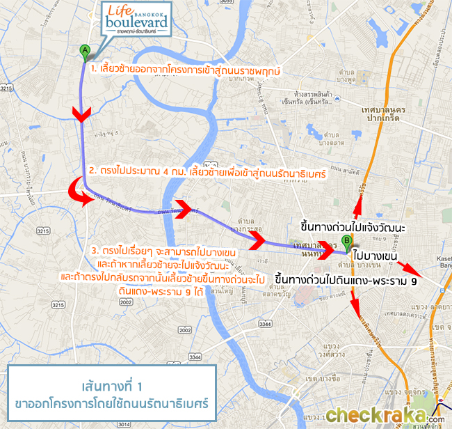 เส้นทางที่ 1 - ขาออกโครงการ ออกโดยใช้ถนนรัตนาธิเบศร์