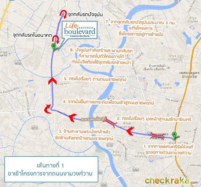 - ที่ตั้งโครงการ ถนนราชพฤกษ์ ตำบลบางรักน้อย อำเภอเมืองนนทบุรี จังหวัดนนทบุรี 11000