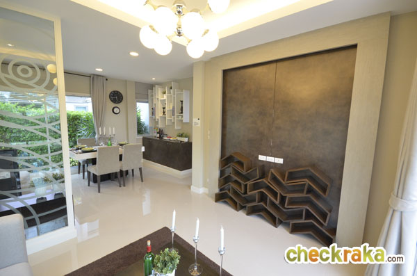 เข้ามาจากโซนรับแขกจะเป็นส่วนรับประทานอาหาร ด้านขวาเป็น Pantry เตรียมอาหาร ด้านซ้ายเป็นมุมพักผ่อน