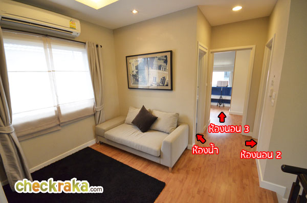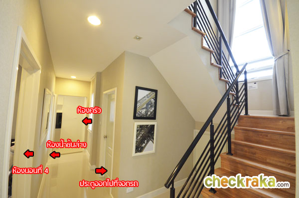 จากบันได ฝั่งขวาเป็นห้องน้ำ ห้องนอน 3 และห้องนอน 2