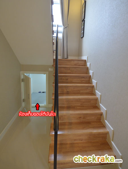 บันไดทางขึ้นชั้น 2 มีห้องเก็บของใต้บันได ข้างในนั้นมีตู้เบรคเกอร์ควบคุมภายในบ้านอยู่ค่ะ