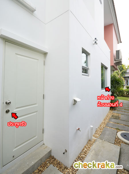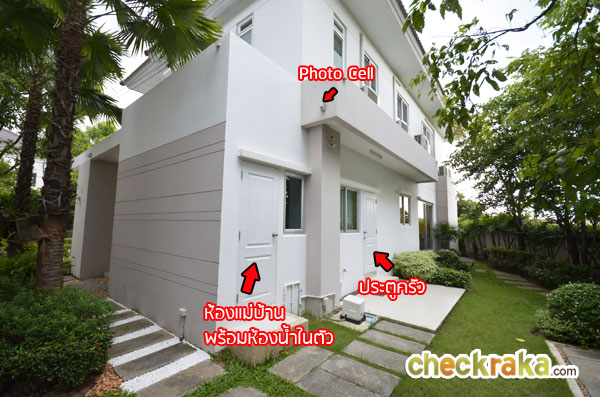 ด้านหลังบ้านมีห้องแม่บ้านพร้อมห้องน้ำในตัว พื้นที่ซักล้างปูกระเบื้องให้ จะเห็นว่ามี Photo Cell