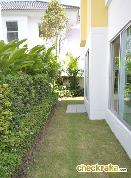 ด้านข้างบ้านแต่ละแปลงจะแตกต่างกันตามแต่ขนาดที่ดิน จะโรยกรวดและวางแผ่นหินสำหรับเดินให้