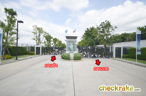 ถัดจากซุ้มประตูเข้ามาจะเจอกับระบบรักษาความปลอดภัยชั้นแรก ถนนทางเข้า-ออกกว้างถึง 18 เมตร