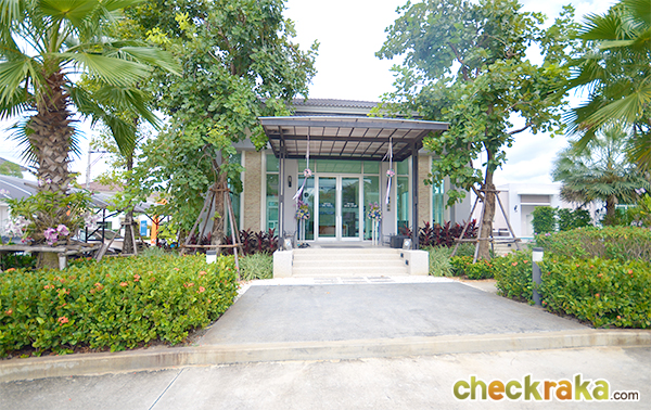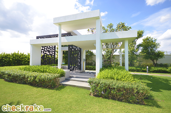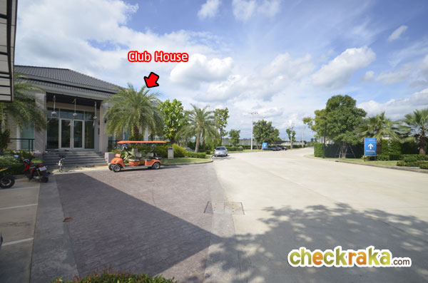 ผ่านประตูชั้นแรกเข้ามาตรงมุมโค้งฝั่งซ้ายจะเจอกับคลับเฮ้าส์ ส่วนฝั่งขวาเป็นสวนสีเขียวขนาดเล็ก