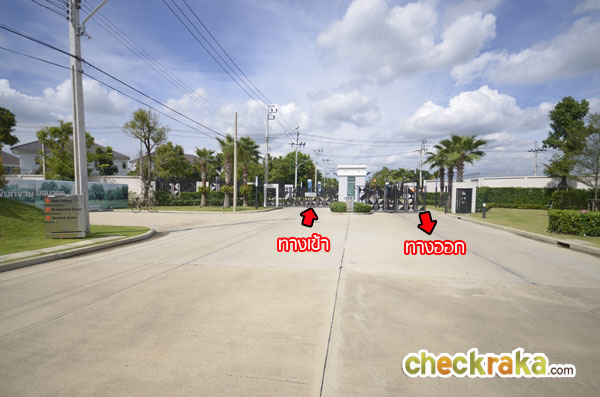 เลี้ยวซ้ายเข้าโครงการมาจะเจอกับป้ายชื่อโครงการขนาดใหญ่ และซุ้มประตูอยู่ถัดไป มี รปภ.คอยต้อนรับ 24ชม.