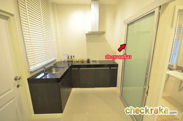 ถัดจากห้องน้ำคือห้องครัว ประตูครัวเป็นแบบบานเลื่อน