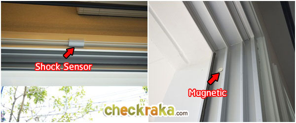 Magnetic ติดอยู่ตามประตู และหน้าต่างทั้งชั้นบนและชั้นล่าง ส่วน Shock Sensor จะติดแค่ชั้นล่างค่ะ
