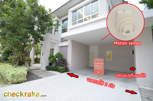 โรงจอดรถจะลงเสาเข็มในส่วนที่เป็นตัวบ้านให้ และมี Motion Sensor ตรวจจับความเคลื่อนไหว