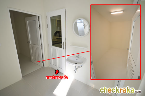 หากเปิดประตูครัวฝรั่งออกมาแล้วประตูด้านขวามือเป็นห้องเก็บของค่ะ ฝั่งซ้ายเป็นอ่างล้างหน้า